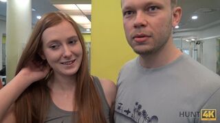 HUNT4K. Long-haired ginger with cute face sells tiny pussy for money