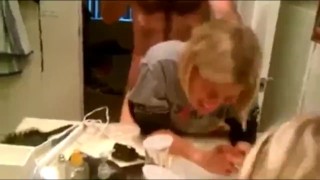 Stepson with monster cock fucks his mature stepmom in the kitchen
