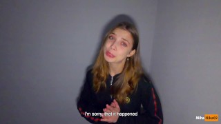I tore my stepsister’s leggings and fucked her and cum on her pussy