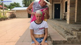 Bald head shaving and double penetration in all holes