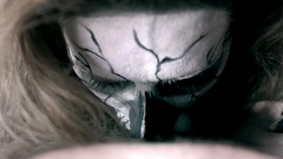 horror porn. Skeleton female gives blowjob and jerks off to man