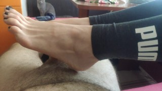Footfetish,Footjob,nylon,stockings,Дрочит ножками (ногами)чулках.