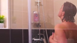 Busty Redhead Masterbates in the shower while family is home