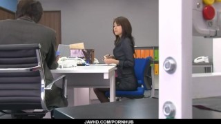 Office bimbo, Ayumi Iwasa, removes her undies for a wild fuck
