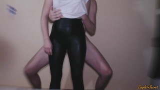 cute Girl give Blowjob in Vinyl Leather Latex PVC Leggings