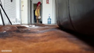 Сексуальный пранк с падающим полотенцем перед доставщиком воды
