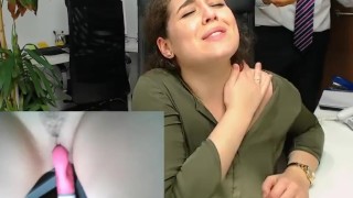 Spanish Office Secretary plays at Work